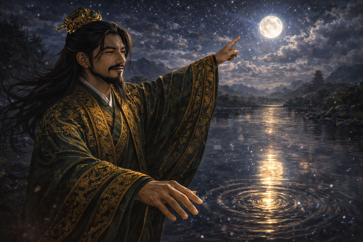 三国志の天才軍師、諸葛孔明。彼はダークグリーンの豪華な衣装を纏い、黄金の冠を戴きながら、常に「思い通りの未来」を戦場に作り出してきました。